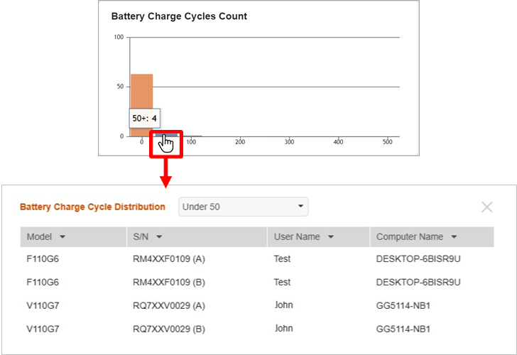 When you hover over a chart and the mouse cursor turns into a hand icon (with or without a pop-up data box), it means you can click to view the related device list.