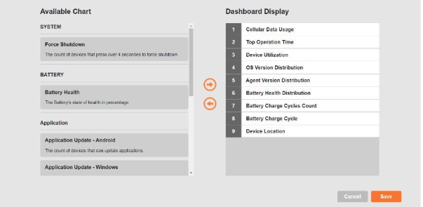 The “Available Chart” column at the left side lists the available items. They include items you have previously removed from the right-side list and items you have added via the Alert Threshold settings page.