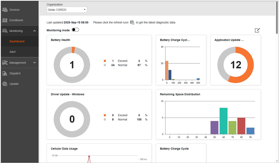 NOTE: The “Monitoring” menus will appear only for the product Getac Monitoring.