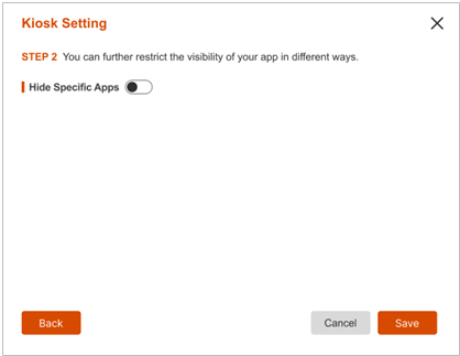 This step is for the “Kiosk only” setting type only. It is not available for the “Kiosk + Launcher” setting type.