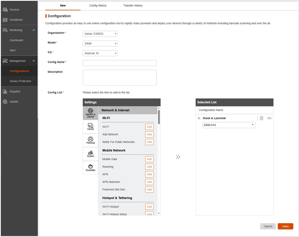 After creating a Kiosk & Launcher profile, you can apply the profile to devices by starting from here or from the Configurations page.
