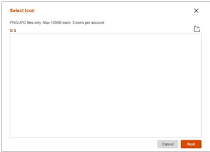 Icon: To set the icon for the title bar, click Select Image. The thumbnail area of the popup window is empty when you first access the function. Click