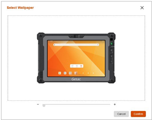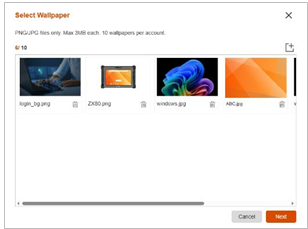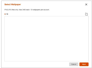 Wallpaper – Image: Select this item if you want to set an image as the wallpaper. The thumbnail area of the popup window is empty when you first access the function. Click