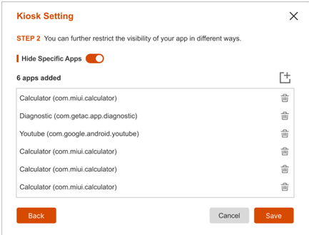 This step is for the “Kiosk only” setting type only. It is not available for the “Kiosk + Launcher” setting type.